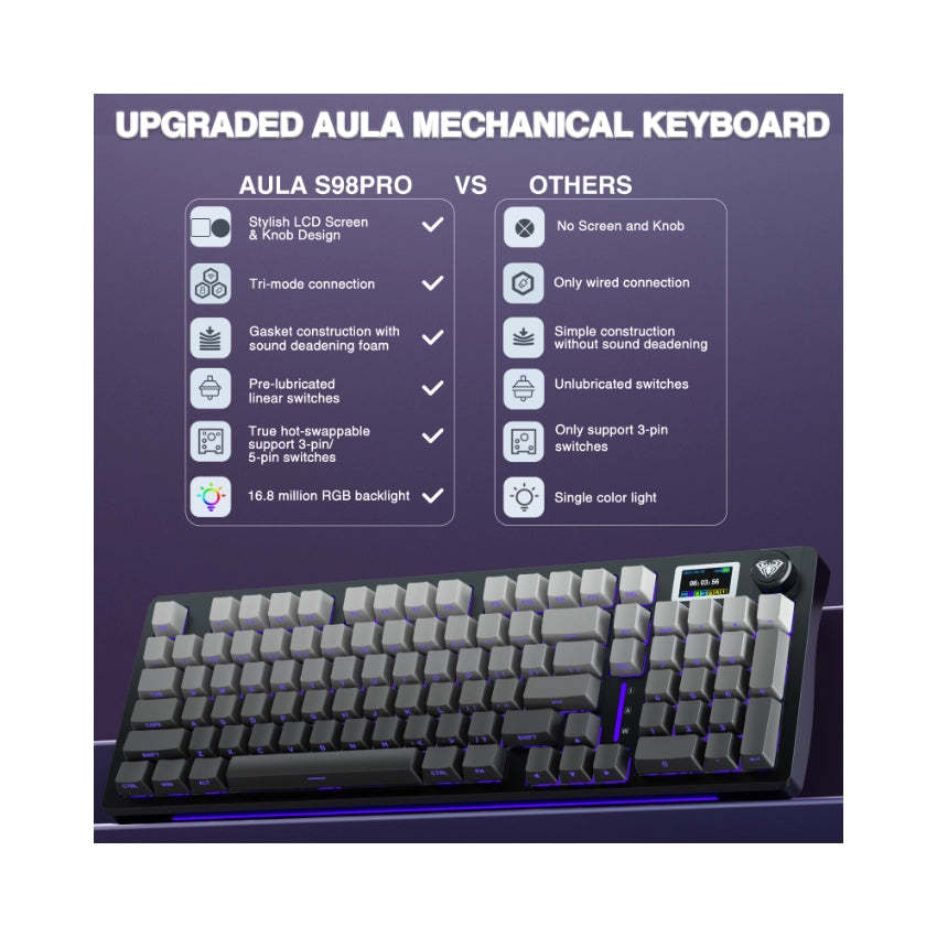 AULA S98 Pro Mechanical Keyboard With Knob& LCD Screen